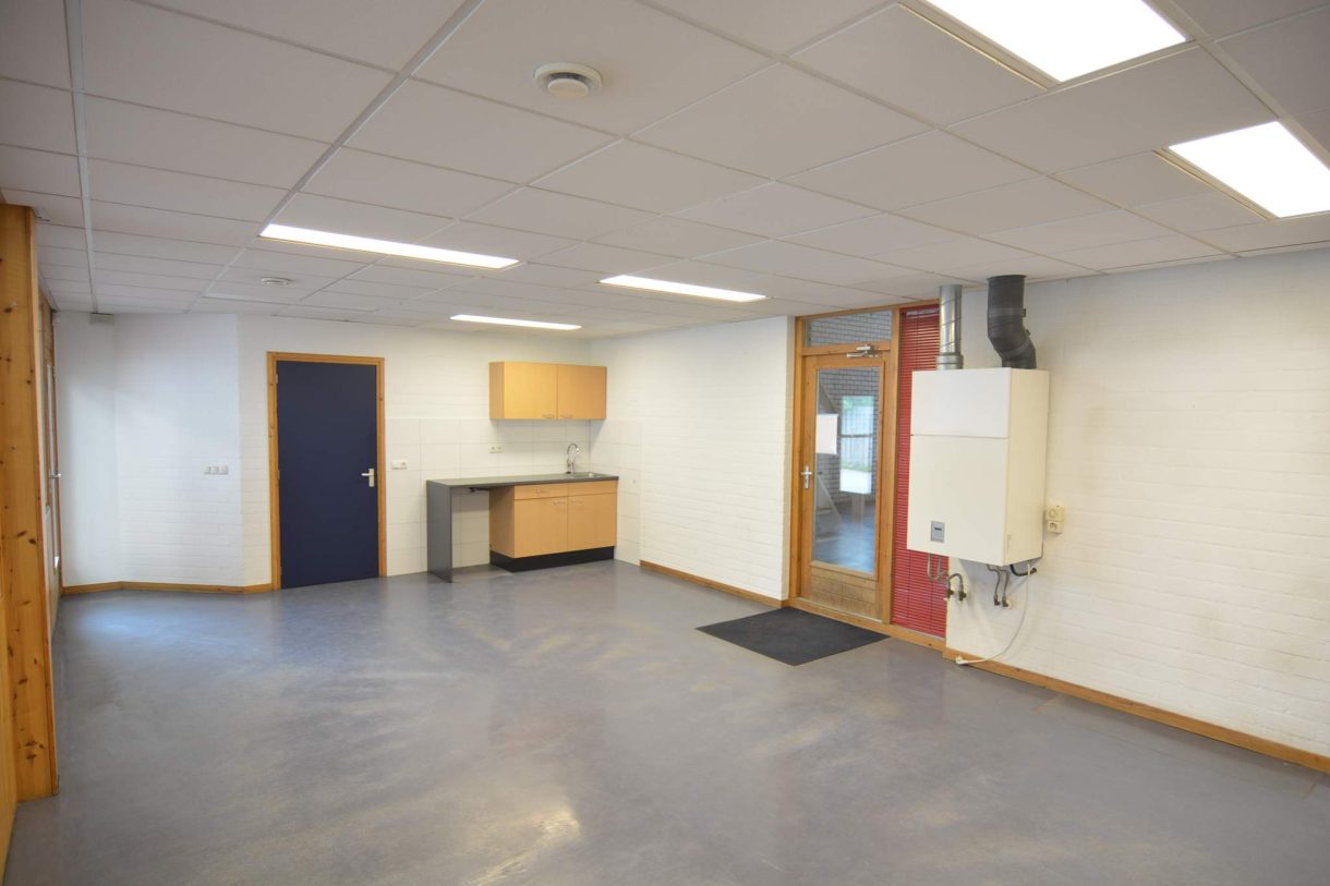 Kantoorruimte bestaande uit 3 grote kantoorkamers van ca. 72, 25 en 28 m² en een personeelsruimte van ca. 42 m² welke is voorzien van pantry en toiletgroep.