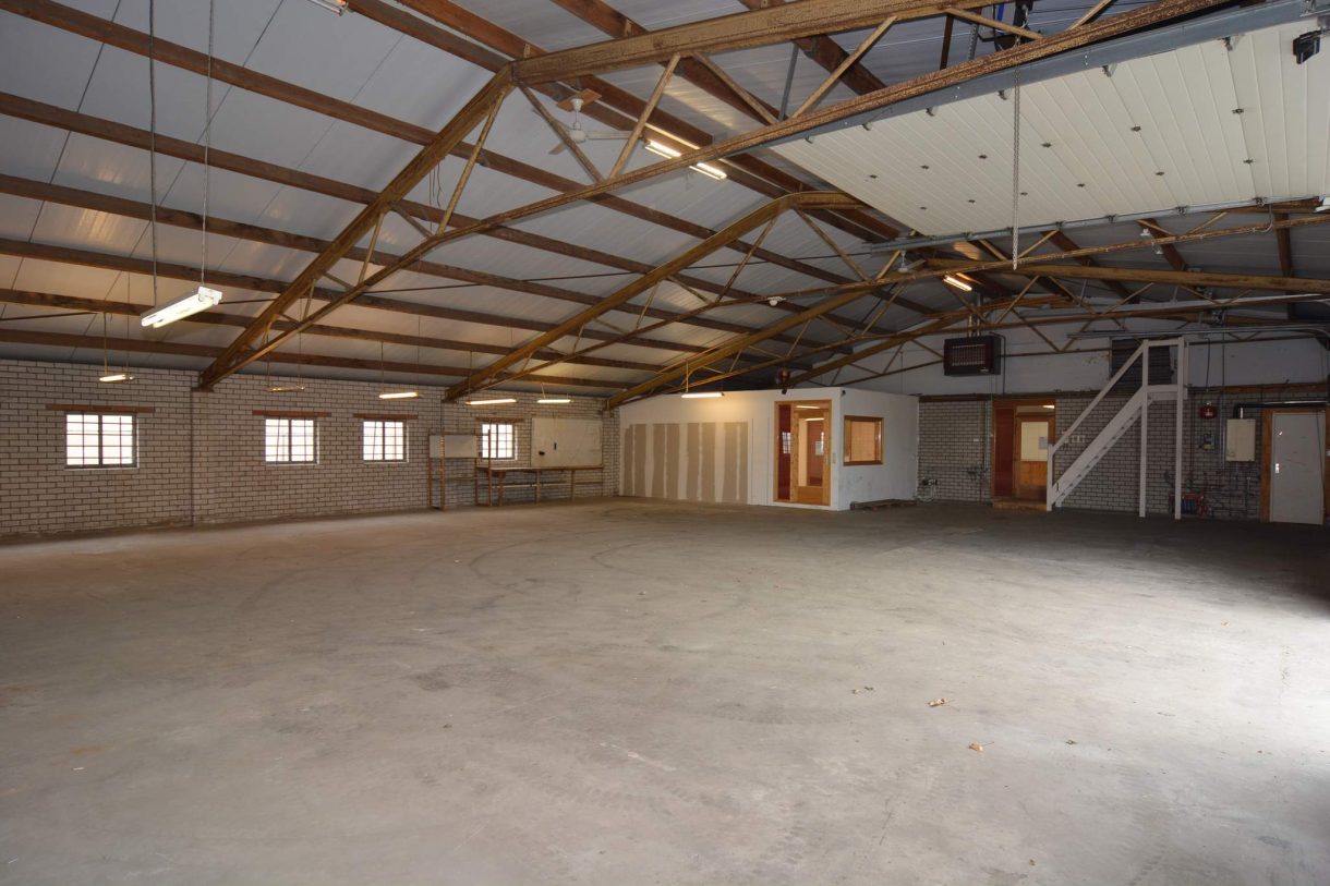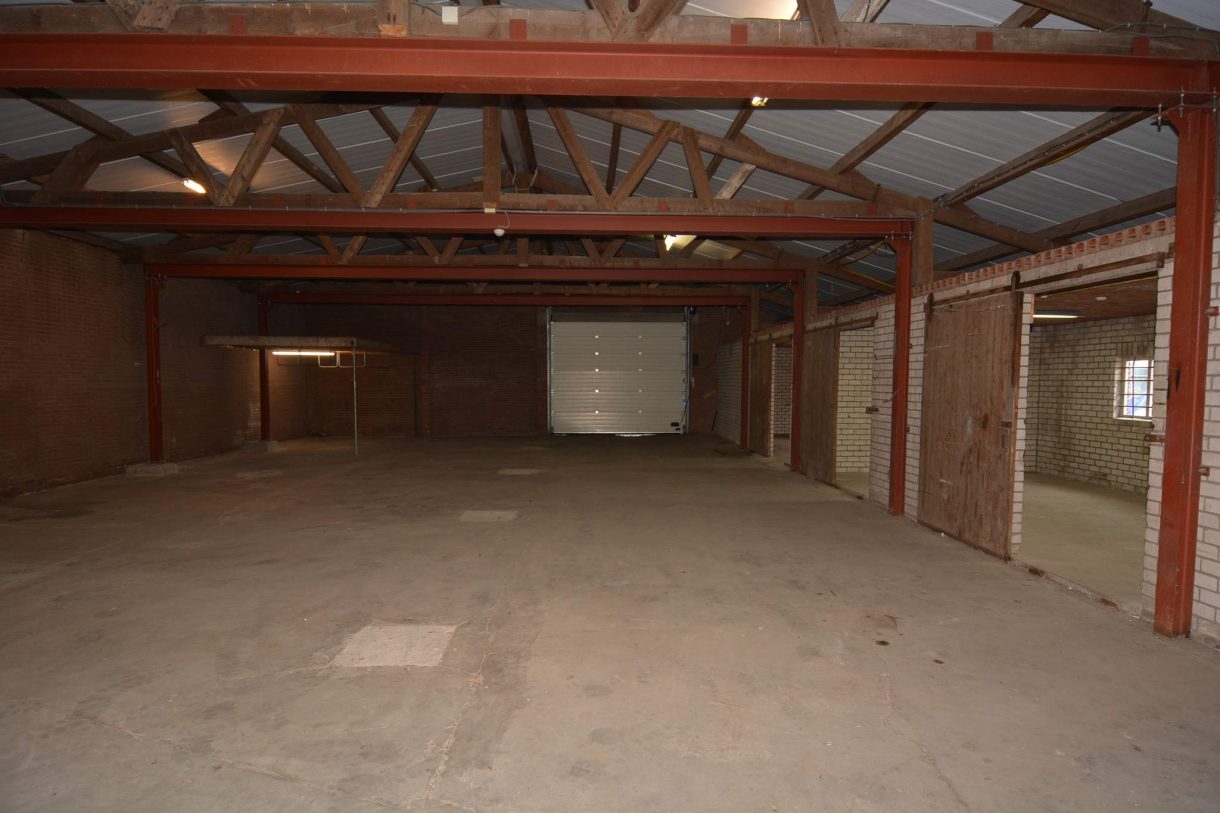 In deze hal zijn een drietal kleine magazijnruimten afgescheiden.