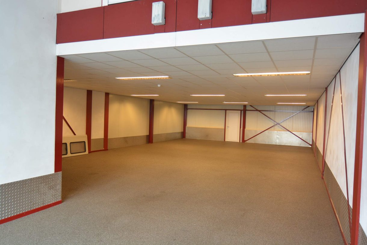 De hal op de begane grond is 156 m² groot, voorzien van een overheaddeur. Op de 1e etage bevindt zich een showroom of opslagruimte van ca. 133 m².