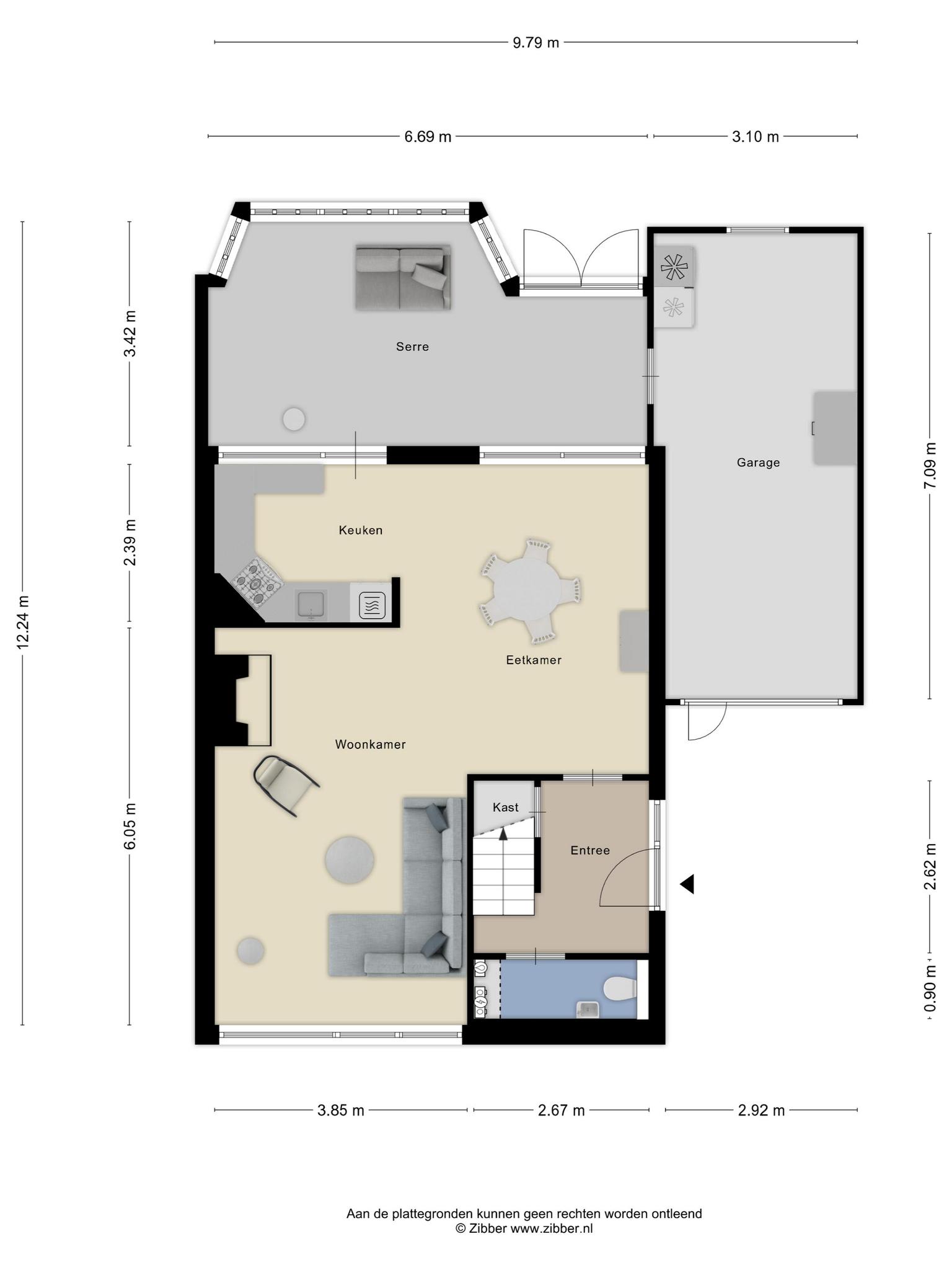 Via de ruime hal met toilet en trapkast stap je de lichte, Z-vormige, verrassend ruime woonkamer binnen. Grote raampartijen zorgen hier voor prettige lichtinval en een fijne, open sfeer. Aansluitend vind je de keuken en een sfeervolle serre. De keuken ligt aan de achterzijde en sluit aan op de serre, een heerlijke extra leefruimte met openslaande deuren naar de tuin. Hier geniet je volop van binnen én buiten. Vanuit de serre is er directe toegang tot de garage, ideaal als berging, klus- of hobbyruimte.