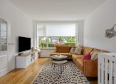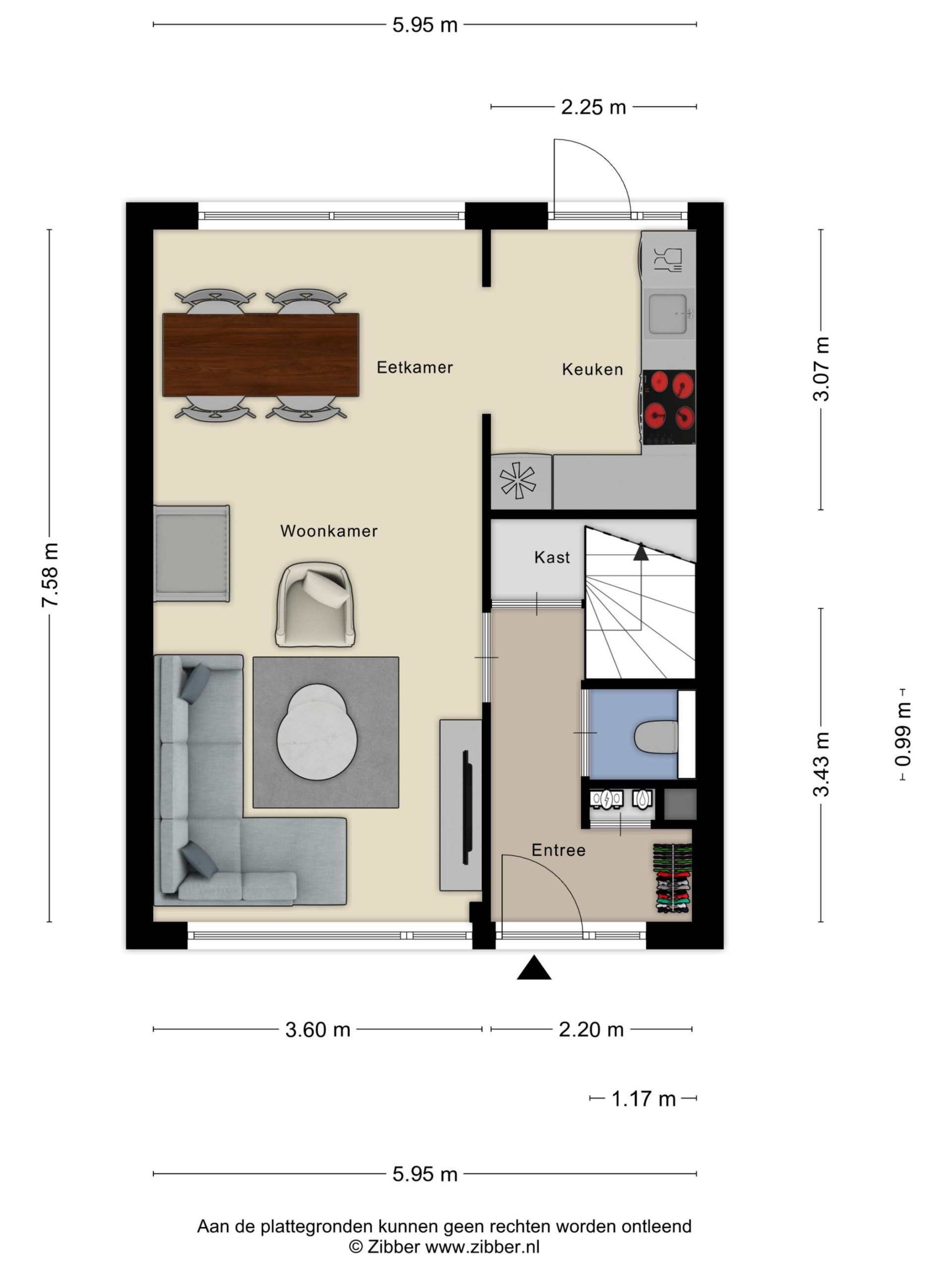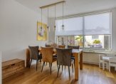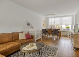 Bij binnenkomst stap je in de lichte hal met een grote provisiekast en het toilet. Vanuit hier bereik je de ruime woonkamer, waar de grote raampartijen zorgen voor veel natuurlijk licht en een fijne sfeer. De halfopen keuken sluit mooi aan op de woonkamer en beschikt over een tuindeur naar de achtertuin. Binnen en buiten komt wordt hier perfect met elkaar verbonden.