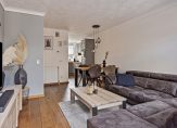 In de straat is er voldoende plaats voor de auto. Bij binnenkomst kom je in de ruime hal met toegang tot de woonkamer, die fraai is uitgevoerd met strakke wanden en eiken vloerdelen. De woonkamer en keuken zijn aaneen gesloten, zodat vanuit de keuken direct contact is met wat er in de woonkamer gebeurt.