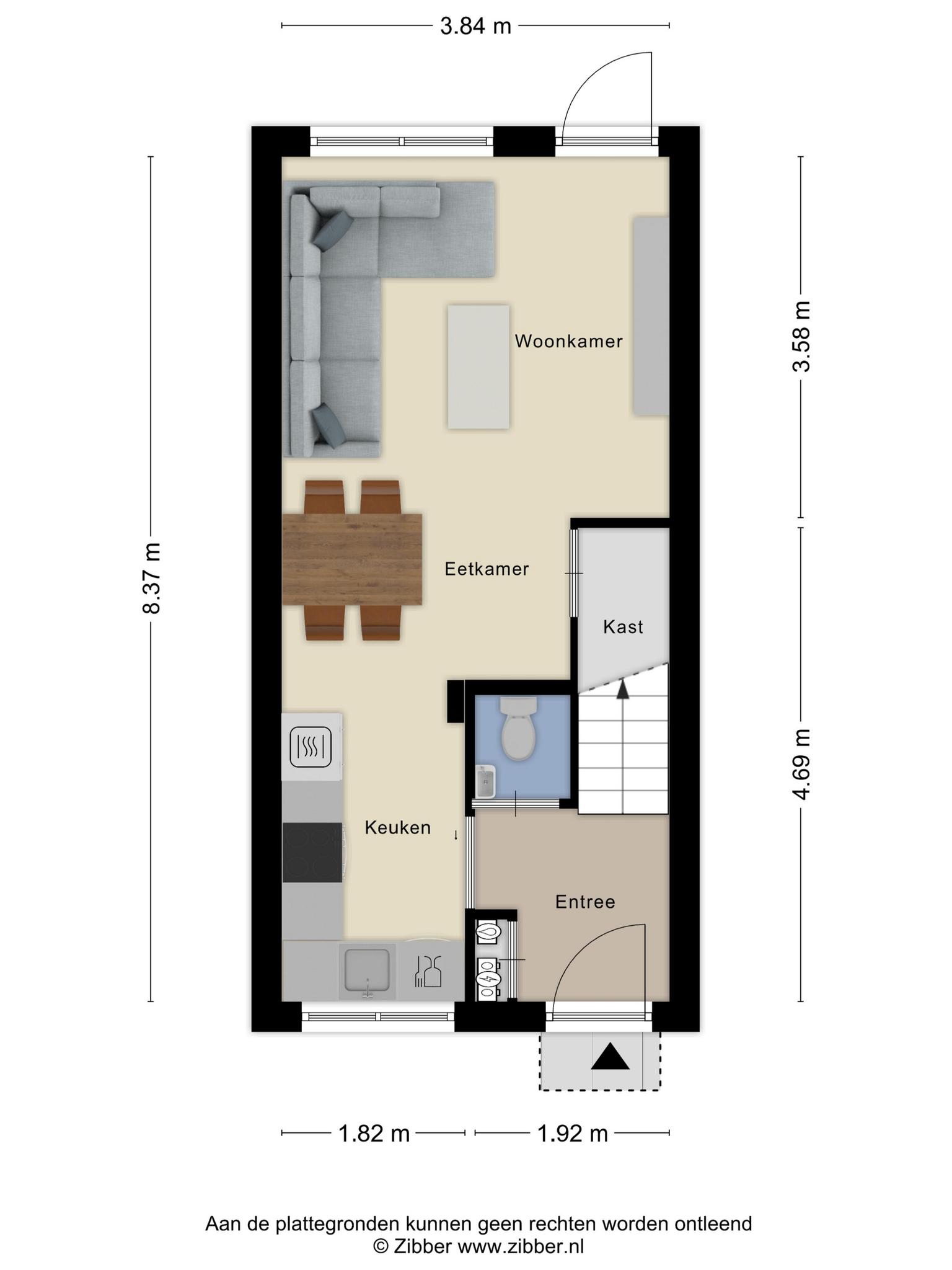 – tuingerichte woonkamer met trapkast en tuindeur;
