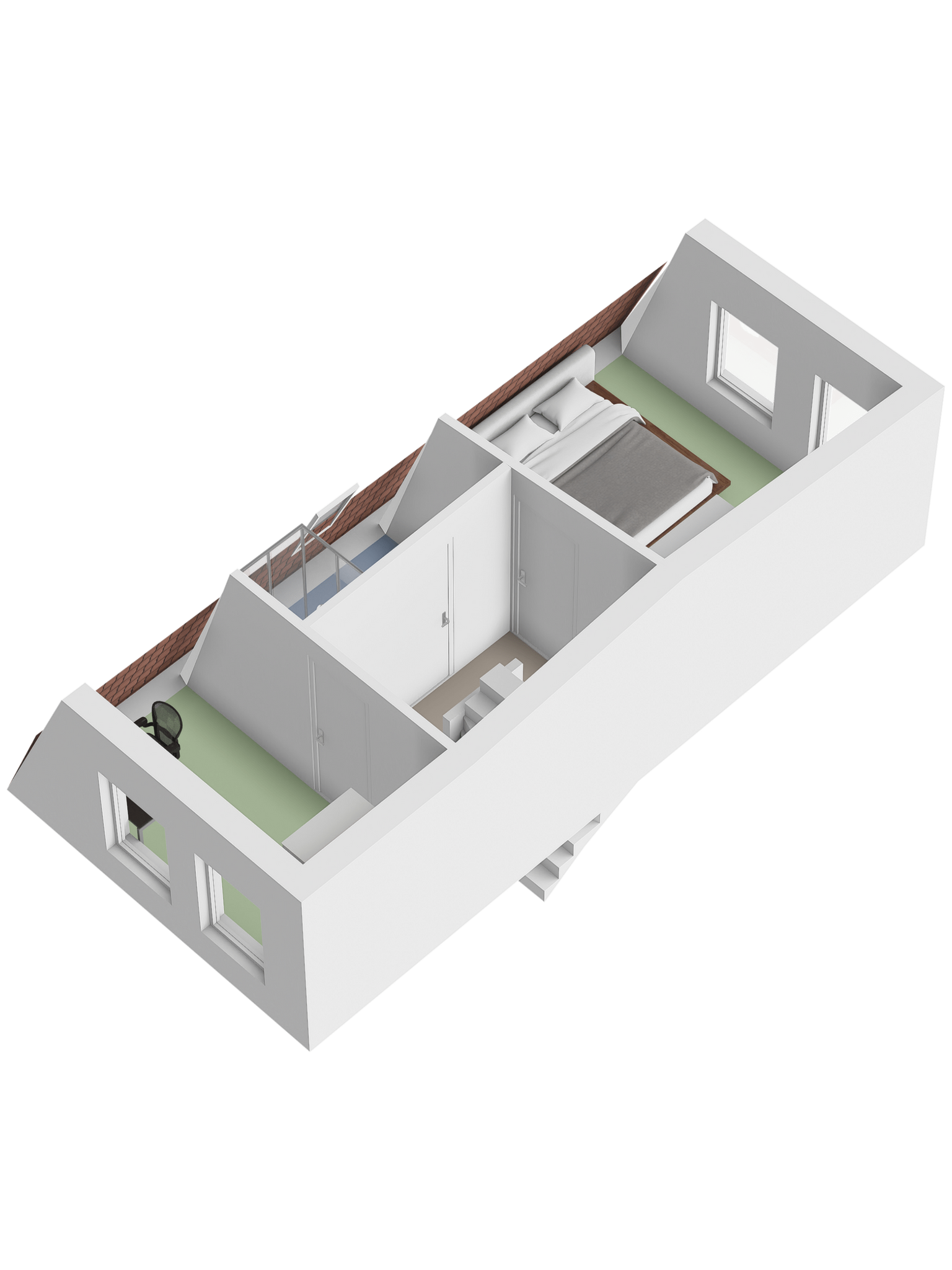 Slapen en wassen op de 1e en 2e verdieping. De 2 slaapkamers bevinden zich op de 1e verdieping net als de badkamer, die mooi is uitgevoerd met douche cabine en wastafelmeubel (2022). De 2e verdieping verbaast in elk opzicht. De ruimte is ideaal te gebruiken als bergruimte of werkplek aangezien het dakraam zorgt voor voldoende lichtinval. Bovendien is hier de aansluiting voor de wasmachine en verwarmingsketel (2022).