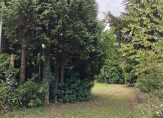 De kavel is omringd door veel bomen en groen, waardoor je hier volop rust en privacy ervaart. De natuurlijke omgeving benadrukt het landelijke karakter en maakt dit een prachtige plek om te wonen.
