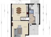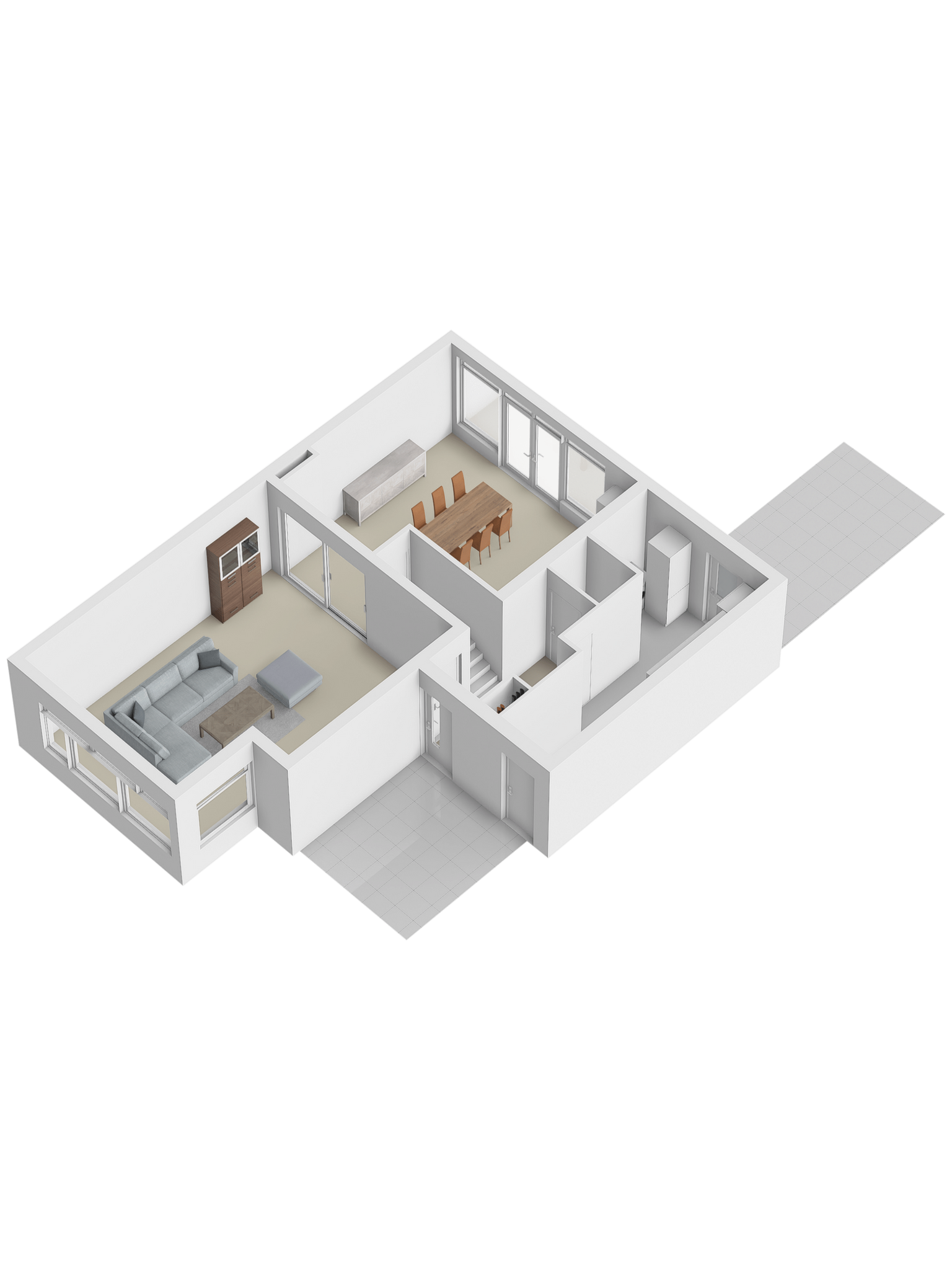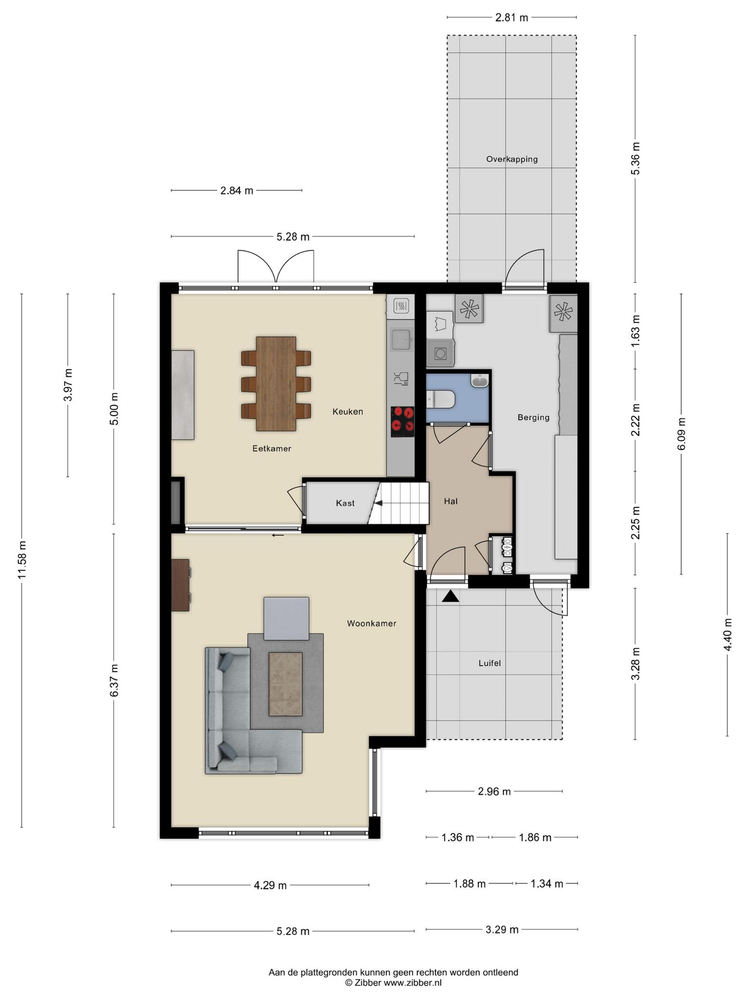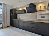 – woonkeuken met provisiekast en 2 openslaande tuindeuren.