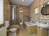 – badkamer met ligbad, douche cabine, wastafel en toilet.